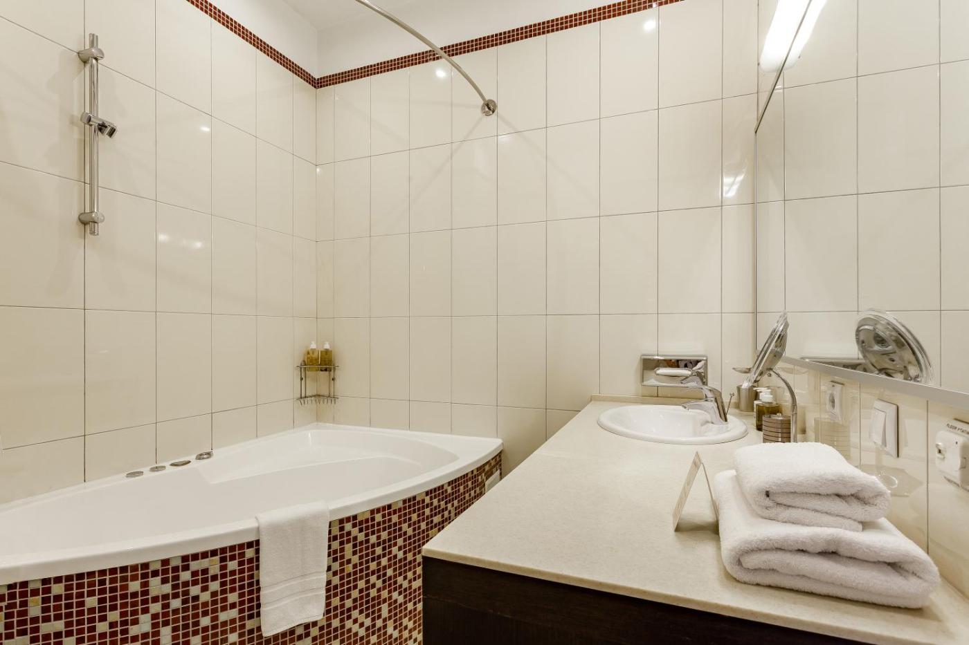 One-Bedroom Apartment with Spa Bath. The hot tub and spa bath are the special features of this apartment. This spacious apartment comprises 1 living room, 1 separate bedroom and 1 bathroom with a hairdryer and free toiletries. In the kitchen, guests will find a stovetop, a refrigerator, kitchenware and a microwave. The air-conditioned apartment provides a flat-screen TV with satellite channels, a washing machine, a seating area, a dining area as well as city views. The unit offers 2 beds.